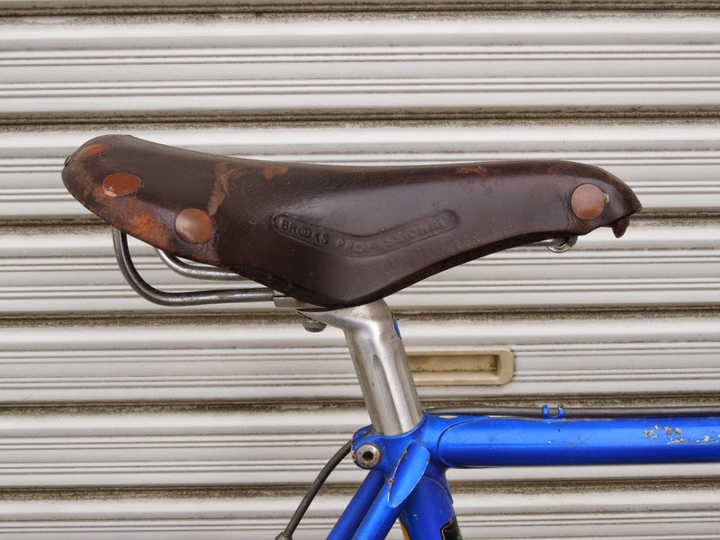 ブレーキは、サンツアー・シュパーブ・プロ、ハブはサンシン・プロ・エーエム?だっけ?(ラージなのは・・・本気でレースやらないからね。)、サドルもブルックス チーム・プロ(大銅鋲)だし・・・